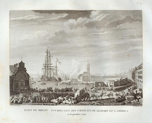 Keywords: Insurrection des vaisseaux de Léopard et l'America.jpg fr Port de Brest Insurrection des vaisseaux de Léopard et l'America en septembre 1790 http //hdl handle net/1920/5750 1804 Pierre-Gabriel Berthault PD-old-100 Pierre Gabriel Berthault Collection complète des tableaux historiques de la Révolution française 44 |