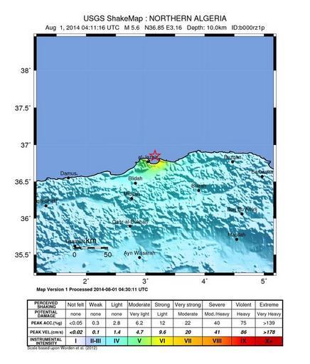 Keywords: Intensityargel.jpg es Mapa de intensidad del sismo de Argelia de Agosto 2014 2014-08-01 11 32 16 http //earthquake usgs gov/earthquakes/eventpage/usb000rz1p summary USGS PD-USGov Uploaded with UploadWizard ShakeMaps Earthquakes of 2014 Earthquakes in Algeria |