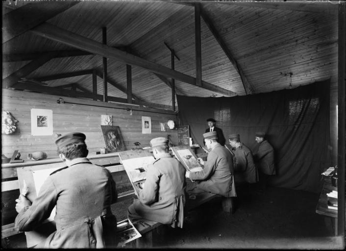 | Keywords: bergen bonda wo1 ww1 great war greatwar eerste wereldoorlog eerstewereldoorlog blackandwhite monochrome indoor black and white Interieur van een dagverblijf met manschappen aan tafeltjes. Aan de wanden hangen o.a. een portret van keizer Wilhelm II, kaarten van het "westelijk operatietooneel" en het "oostelijk operatietooneel". De wand is tevens versierd met het opschrift: "Wir Deutsche furchten Gott, sonst nichts auf der Welt". Datum: 1916 Catalogusnummer: FO1400135 Interieur van een dagverblijf met manschappen aan tafeltjes. Aan de wanden hangen o.a. een portret van keizer Wilhelm II, kaarten van het "westelijk operatietooneel" en het "oostelijk operatietooneel". De wand is tevens versierd met het opschrift: "Wir Deutsche furchten Gott, sonst nichts auf der Welt". Datum: 1916 Catalogusnummer: FO1400135 |