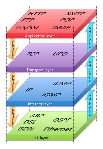 | Keywords: InternetProtocolStack.png en A graphic representation of the Internet Protocol Stack according to RFC 1122 with some of the important protocols visible sv En grafisk representation över protokollstacken i datakommunikation över internet enligt RFC 1122 own Bughunter 2009-02-08 Computer architecture diagrams Internet protocols |