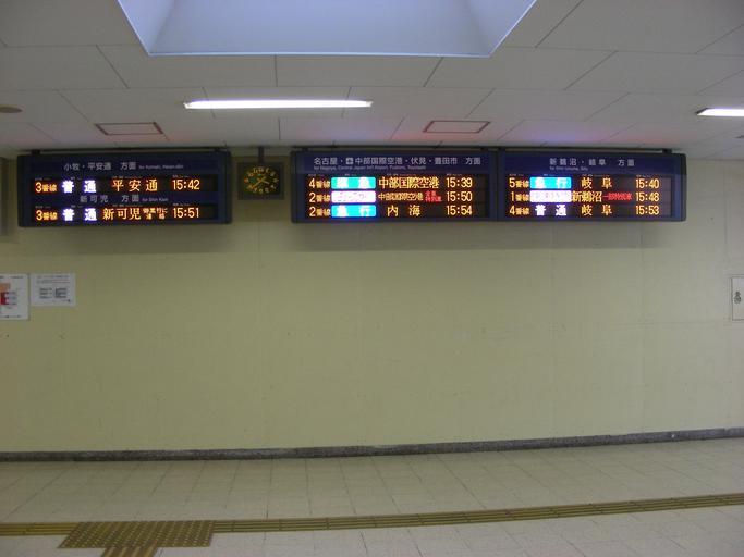 Keywords: Inuyama Station Information LED.JPG ja 犬山駅のバリアフリー化に伴い設置された 種別フルカラーLED式列車案内 犬山駅 gotosato 2010-12-18 Cc-zero Inuyama Station LED displays at train stations in Japan Time 03 38