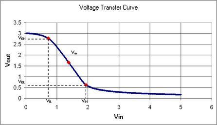 | Keywords: Inverter voltage transfer curve.png graph Inverter voltage transfer curve from English Wikipedia Voltages marked on the graph VOH Output High - output above this mark is considered on 1 VOL Output Low - output below this mark is considered off 0 VIH Input High - input at or above this mark will turn the device off VIL Input Low - input at or below this mark will turn the device on Vm Midpoint Voltage - used for calculating noise margins gain and other parameters I am the author Nader Moussa I constructed this data from a device I built for my ECE442 class at North Carolina State University This is a Voltage Transfer Curve used to analyze a digital inverter circuit The data represents a general behavior for similar devices Since I am the author I release it to public domain Uploaded for use in Lithuanian Wikipedia Audriusa 13 29 5 March 2006 UTC Electrical diagrams |