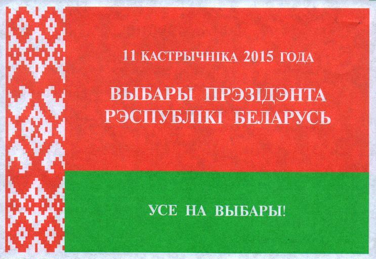 | Keywords: Invitation to presidential election in Belarus (2015) - obverse.jpg en Official invitation to presidental elections in Belarus 2015 delivered by post obverse Translation from Belarusian 11 October 2015 Election of the president of the Republic of Belarus Everyone come to the election be Афіцыйнае зап ашэнне на п эзідэнцкія выба ы ў Бела усі 2015 Асабовы бок ru Официальное п иглашение на п езидентские выбо ы в Бела уси 2015 Лицевая сто она 2015-10-01 22 30 32 PD-textlogo PD-BY-exempt Homoatrox other versions 100px cc-by-sa-4 0 Uploaded with UploadWizard Voter invitation cards Presidential election of Belarus 2015 Cyrillic writing |