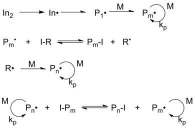 Keywords: Iodine transfer RP.png en Illustration of iodine transfer polymerization own Bruintje71 2010-06-06 Living polymerization