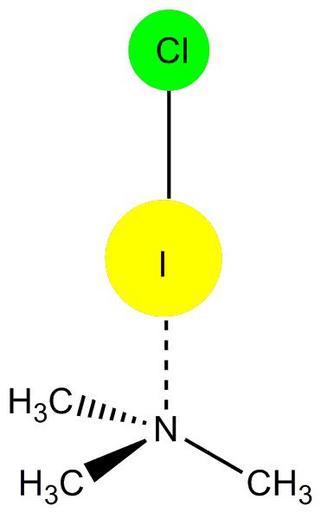 Keywords: IodoChlorineAmine.jpg en Molecular complex between iodine monochloride and trimethyl amine Own Chem540grp6f08 Check categories 2008 December 18 en wikipedia Halogen_bond Chemical bonding