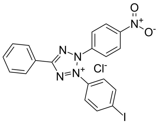 Keywords: Iodonitrotetrazolium chloride.svg Chemical structure of iodonitrotetrazolium chloride INT Own 13 33 18 June 2013 UTC Ed Edgar181 200px Dyes Tetrazoles Quaternary ammonium compounds Chloride salts of organic compounds Nitrobenzenes Monoiodobenzenes |