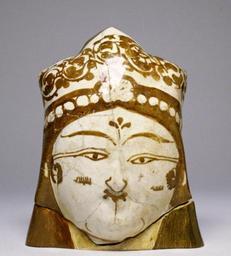 | Keywords: Iranian - Fritware Female Head with Floral Head Covering - Walters 481192.jpg This piece is decorated with a gold-olive lustre on white It may have served as the top of a large vase or water vessel century 12 Medieval fritware with luster decoration cm 15 11 9 9 accession number 48 1192 37990 Found at Rhadjes Dikran Kelekian Constantinople and Paris by purchase Henry Walters city Baltimore Walters Art Museum Henry Walters Acquired by Henry Walters 1914 place of origin Kashan Iran Walters Art Museum license Islamic art in the Walters Art Museum Art of Iran Media contributed by the Walters Art Museum needs category review |