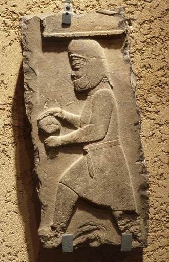 Keywords: Iranian - Offering Bringer - Walters 2119.jpg A servant of the royal Achaemenid court at Persepolis in present-day Iran is shown carrying a covered vessel to the New Year's festival banquet His clothing distinguishes him as a Mede The Medes had dominated the Persian region until overthrown by the Achaemenids in 550 BC The Achaemenids became the ruling dynasty of Persia until 330 BC when they were defeated by Alexander the Great This piece was probably part of a sculptural procession decorating the inner wall of the western staircase of the palace of King Darius I reigned 521-486 BC The figure gives the impression of mounting the stairs beside the visitor the figure's right foot was raised to the level of the tread of the actual stair ca 500 BC Achaemenid limestone cm 73 34 9 10 1 accession number 21 19 13139 Raphael Stora Paris and New York by purchase Walters Art Museum 1946 by purchase Museum purchase 1946 Ancient Persia The Art of an Empire The Walters Art Gallery Baltimore; University Art Museum University of Texas at Austin Austin 1978 Faces of Ancient Arabia The Giraud and Carolyn Foster Collection of South Arabian Art The Walters Art Museum Baltimore 2008 place of origin Tell Halaf in present-day Syria Walters Art Museum license Ancient Near East art in the Walters Art Museum Reliefs from Persepolis Media contributed by the Walters Art Museum needs category review Tell Halaf |