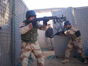 | Keywords: Iraqi Army Soldiers Taught 'Warrior Ethos' by Black Dragons DVIDS35284.jpg en Iraqi Army students at the joint Iraqi and 4th Brigade Combat Team 1st Cavalry Division NCO Academy at Q-West Base Complex Iraq demonstrate close-quarters battle drills and room clearing Jan 22 U S Army photo by Sgt David Gilmore Joint NCO Academy Administrative Officer 4th Brigade Combat Team 1st Cavalry Division 2007-01-29 https //www dvidshub net/image/35284 35284 2007-01-29 12 11 CONTINGENCY OPERATING BASE Q-WEST IQ PD-USGov Army of Iraq post-2003 Images from DoD uploaded by Fæ |