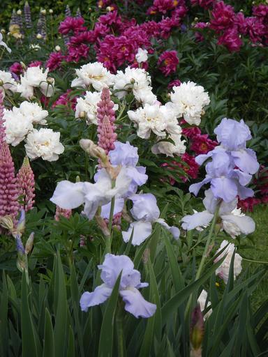 Keywords: iris lupine peony flowers nature white helllila red purple many blütenmeer botanical garden munich sun spring may