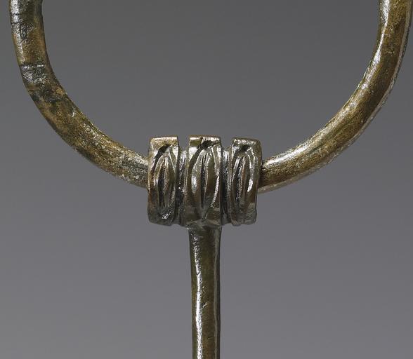 Keywords: Irish Celtic - Penannular Brooch - Walters 542341 - Back Detail B.jpg Pins of this kind developed from Roman models and were fashionable as cloak fasteners from the 4th through the 10th centuries in the British Isles The wearer pierced the fabric with the pin pointed upwards or to the side and twisted the round hoop described as penannular because it takes the shape of an incomplete circle to lock the pin and gathered fabric in place Originally this early medieval Irish brooch would have had red enamel in the hollowed out areas making a richly colored background for the bronze spirals on the terminals and the hatched and oval decorations on the pin century 6 7 Early Medieval bronze with traces of gilt cm 12 5 6 5 1 2 accession number 54 2341 4768 Robert Day Cork Robert Day Sale Sotheby Wilkinson Hodge London May 19-22 1913 no 382 William Randolph Hearst date and mode of acquisition unknown Joseph Brummer date and mode of acquisition unknown Joseph Brummer Sale Parke-Bernet Galleries New York May 11-14 1949 no 277 Walters Art Museum 1949 by purchase Museum purchase 1949 Early Christian and Byzantine Art Baltimore Museum of Art Baltimore 1947 The Arts of Man Dallas Museum of Art Dallas 1962 Jewelry - Ancient to Modern The Walters Art Gallery Baltimore 1979-1980 Objects of Adornment Five Thousand Years of Jewelry from the Walters Art Gallery Baltimore Cooper-Hewitt National Design Museum New York; Chrysler Museum of Art Norfolk; Carnegie Museum of Art Pittsburgh; San Antonio Museum of Art San Antonio; Philbrook Museum of Art Tulsa; Honolulu Academy of Arts Honolulu; New Orleans Museum of Art New Orleans; Milwaukee Art Museum Milwaukee; Minneapolis Institute of Arts Minneapolis; Toledo Museum of Art Toledo; The John and Mable Ringling Museum of Art Sarasota 1984-1987 Jewelry from the Walters Art Museum and the Zucker Family Collection The Walters Art Gallery Baltimore 1987 place of origin Ireland Walters Art Museum license Medieval metalwork in the Walters Art Museum Penannular brooches Jewellery in the Walters Art Museum Celtic art