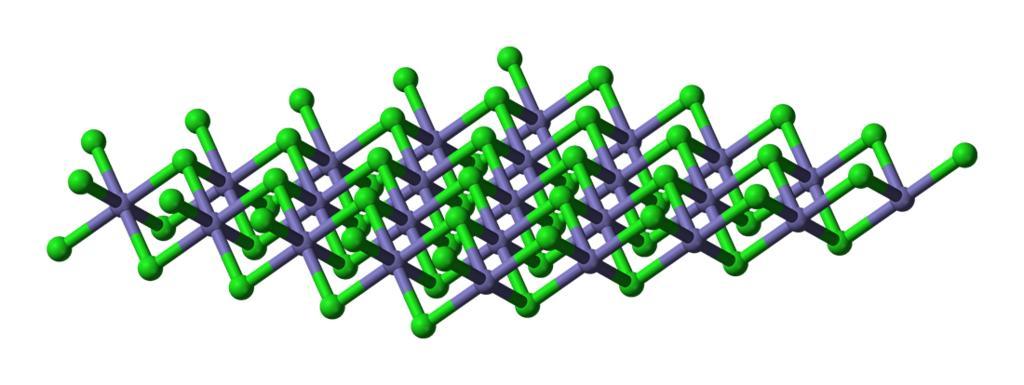 Keywords: Iron(II)-chloride-xtal-sheet-3D-balls-B.png Ball-and-stick model of part of an FeCl<sub>2</sub> <sub> ˆž</sub> sheet in the crystal structure of iron II chloride FeCl<sub>2</sub> X-ray crystallographic data from http //rruff geo arizona edu/AMS/download php id 10773 cif down text AMCSD originally from <small>R W G Wyckoff Crystal Structures 1 1963 Second edition Interscience Publishers New York 239-444 </small> Own 2009-03-05 Ben Mills Benjah-bmm27 Images by Ben Mills Crystal structure of iron II chloride |