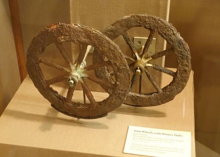 Keywords: Iron wheels with bronze hubs - Nabu Temple, Palace of Sargon II, Khorsabad, Neo-Assyrian period, 721-705 BC - Oriental Institute Museum, University of Chicago - DSC07574.JPG en Exhibit in the Oriental Institute Museum University of Chicago Chicago Illinois USA This work is old enough so that it is in the public domain Photography was permitted in the museum without restriction 2014-08-22 15 32 22 own Daderot other versions cc-zero Uploaded with UploadWizard Nabu Temple Oriental Institute Museum Metalwork of Mesopotamia in the Oriental Institute Museum Ancient wheels |