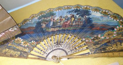 Keywords: Isabelline fan, cloth with painting - Fan Room, Alcázar of Seville, Spain - DSC07313.JPG en Exhibit in the Fan Room Alcázar of Seville This work is old enough so that it is in the public domain Photography was permitted in the museum without restriction 2014-10-07 07 30 49 own Daderot other versions PD-old-70 cc-zero Fan Room Alcázar of Seville Uploaded with UploadWizard