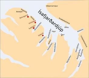 Keywords: Ísafjarðardjúp kort 3.svg en Map of Ísafjarðardjúp bay in the Westfjords area of Iceland with main fjords islands mountains and villages 2012-04-18 own Salvor cc-zero Uploaded with UploadWizard Maps of Ísafjarðardjúp