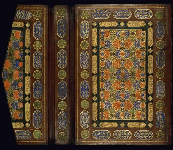 Keywords: Islamic - Binding from Two Works of Sa`di - The Rose Garden (Gulistan) and The Orchard (Bustan) - Walters W619binding - Bottom Interior Open.jpg Walters manuscript W 619 is bound in an original leather binding with a flap The binding has dentelle-style decorated boards and doublures of brown leather with gold-painted filigree work on a multi-colored ground of blue green red and black islamic 1572 980 Safavid boards covered with leather Folio cm 32 0 21 5 accession number W 619 binding 81854 Henry Walters Baltimore date and mode of acquisition unknown Walters Art Museum Henry Walters Acquired by Henry Walters place of origin Iran Walters Art Museum license 2D Islamic manuscripts in the Walters Art Museum Media contributed by the Walters Art Museum needs category review |