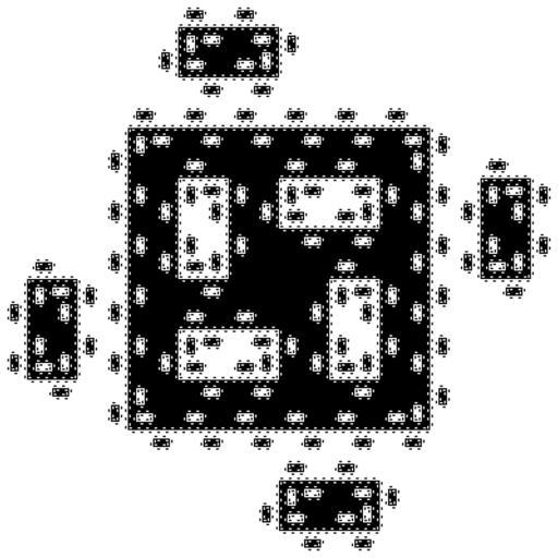 | Keywords: IslandsAndLakesColored.svg en 3rd iteration of L-system called Islands and lakes cs 3 iterace L-systému Ostrovy a jezera own NightElfik Original L-system from book The Algorithmic Beauty of Plants by Przemyslaw Prusinkiewicz and Aristid Lindenmayer Generated with <pre>IslandsAndLakesColored axiom g + 1 f +f +f +f ; angle 90; i 3; palette fff 000; polyReverse 1; f > g+h- g + 1 2 ff +f +ff +f h+gg-h+ g 2 ff -f -ff -f h-ggg; g > f+h- g 2 gg +g +gg +g h+ff-h+ g + 1 2 gg -g -gg -g h-fff; h > hhhhhh; </pre> L-Systems Files by User NightElfik Order 3 |