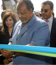 | Keywords: Ismail Omar Guelleh ribbon-cutting.jpg en Djibouti President Ismail Omar Guelleh cuts the inaugural ribbon Feb 26 at the new Defense Fuel Supply Point DFSP at the Port of Doralleh USS Vicksburg currently on a scheduled deployment to the 5th Fleet area of operations in support of maritime security operations MSO became the first U S Navy ship to refuel at DFSP Djibouti MSO help set the conditions for security and stability in the maritime environment and complement the counter-terrorism and security efforts of regional nations MSO deny international terrorists use of the maritime environment as a venue for attack or to transport personnel weapons or other material http //www dvidshub net/index php script images/images_gallery php action viewimage fid 15723 Petty Officer 2nd Class Cassandra Thompson 2006-02-26 PD-USGov-Military-Navy Ismail Omar Guelleh Ribbon-cutting ceremonies Taken with Nikon D1X |
