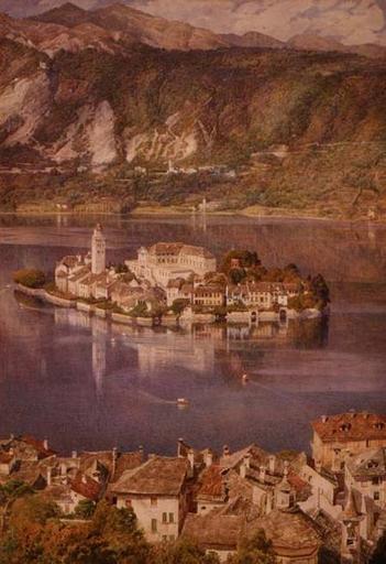 Keywords: Isola San Giulio, Lake Orta.jpg en Isola San Giulio Lake Orta ~ 1880 http //www sightswithin com/Edward Poynter/Page_2/ E Poynter PD-old Uploaded with UploadWizard Edward Poynter