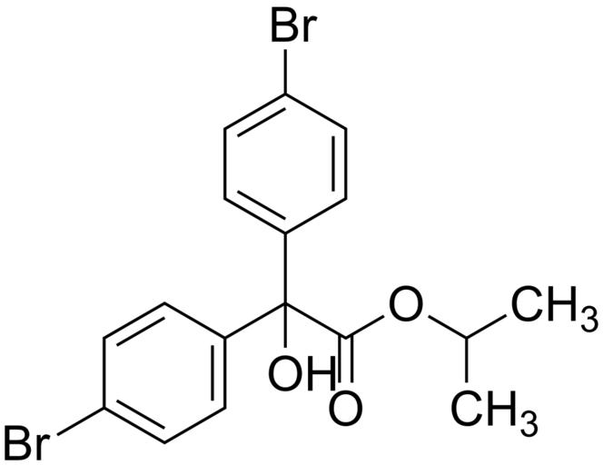 | Keywords: Isopropyl 2,2-bis(4-bromophenyl)-2-hydroxyacetate 200.svg  validSVG Structure of isopropyl 2 2-bis 4-bromophenyl -2-hydroxyacetate Own 2014-06-09 Emeldir <span class signature-talk ></span> Chemical structure verified https //upload wikimedia org/wikipedia/commons/8/8d/Isopropyl_2 2C2-bis 284-bromophenyl 29-2-hydroxyacetate_200 svg 1S/C17H16Br2O3/c1-11 2 22-16 20 17 21 12-3-7-14 18 8-4-12 13-5-9-15 19 10-6-13/h3-11 21H 1-2H3 FOANIXZHAMJWOI-UHFFFAOYSA-N 18181-80-1 Synonyms <small>1-methylethyl 4-bromo-alpha- 4-bromophenyl -alpha-hydroxybenzeneacetate 1-Methylethyl 4-bromo-alpha- 4-bromophenyl -alpha-hydroxybenzeneacetate 4-Bromo-alpha- 4-bromophenyl -alpha-hydroxybenzeneacetic acid 1-methylethyl ester Acarol Acarol R Bis- 4-bromo-phenyl -hydroxy-acetic acid isopropyl ester bromopropylate Bromopropylate ENY 27552 Folbex VA GS-19851 Isopropyl 2 2-bis 4-bromophenyl -2-hydroxyacetate Isopropyl 4 4'-dibromobenzilate Isopropyl dibromobenzilate Methylethyl 4-bromo-alpha- 4-bromophenyl -alpha-hydroxybenzeneacetate Neoron Neoron R Phenisobromolate</small> PD-chem Bromobenzenes Diphenylmethanols Carboxylate esters Isopropyl esters Acaricides  |