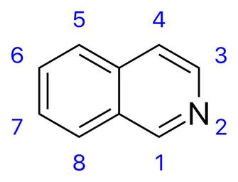 Keywords: Isoquinoline numbered.svg en Isoquinoline structure numbered Own Ring0 2009-09-03 Isoquinoline
