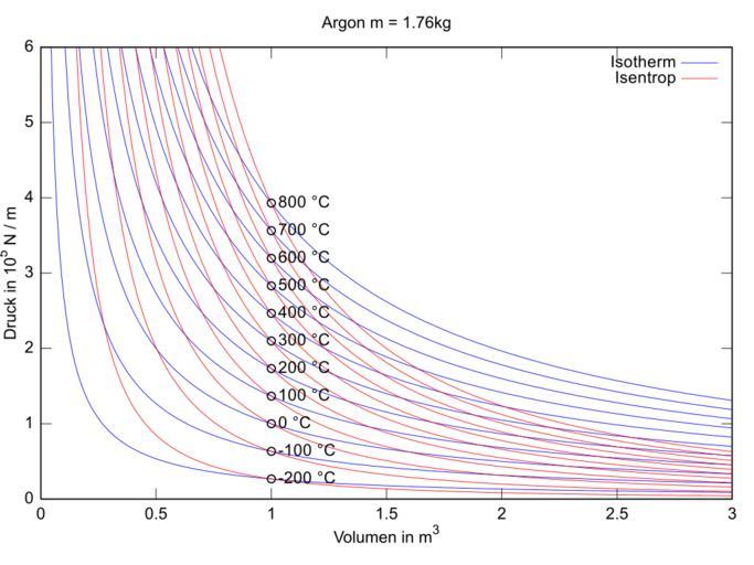 | Keywords: Isothermal and isentropic process.svg de Isotherme und isentrope Zustandsänderung 2014-09-21 16 45 44 own Menner cc-zero Source code Additionally scaled with rsvg-conert <source lang octave > /usr/bin/octave -qf 2014 SetupParameters function SetupParameters global parameters; Arbeitsgas ARGON U_mol T S_mol - R T molare Innere Energie R_S R / M_Argon spezifische Gaskonstante Argon U_S T S_S - R_S T spezifische Innere Energie Argon S_S 3 875 kJ/K pro kg spezifische Entropie Argon parameters M_S 0 03995; kg/mol spezifische Masse für Argon parameters R_S 8 3145e-3 / parameters M_S; kJ / kg K spezifische Gaskonstante für Argon parameters S_Std 3 876; kJ / K spezifische Entropie Argon bei 1 bar und 25°C siehe D Joensson - TECHNISCHE MECHANIK Band 29 Heft 1 parameters T_Std 25 + 273; Temperatur für Standard-Entropie parameters p_Std 1 e5; Druck für Standard-Entropie in N / m 2 parameters C_p 5 / 2; isobare Wärmekapazität zweiatomiges Gas parameters C_V 3 / 2; isochore Wäremkapazität zweiatomiges Gas Wasserstoff parameters kappa 5 / 3; C_p / C_V 7/5 zweiatomiges Gas Druck 1e5 / Volumen 1 m 3 / T_Std 298K parameters Masse parameters p_Std 1 / parameters R_S 273 1 e-3; in kg parameters T_min 273 - 200; parameters T_Schritt 100; parameters T_max 273 + 800; parameters PlotSize 3; parameters Dimensions -S1600 1200 ; parameters filename Isothermal_and_isentrop_process ; parameters endfunction M A I N Derived from File Animation Diagramm Carnotprozess ogv begin_time time ; global parameters; SetupParameters ; Volumen 0 0 01 parameters PlotSize; close ; Close previous plots hold on ; Plot Isotherm Randbedingung konstante Temperatur for temperatur parameters T_min parameters T_Schritt parameters T_max p V n R T m R_S T p m R_S T / V Masse_in_g 1000 parameters Masse; Druck_isotherm Masse_in_g parameters R_S temperatur / Volumen; spezifischer Druck in N / m 2 kg Menge Druck Volumen 1 kg 1 g plot Volumen Druck_isotherm/1e5 color b ; endfor Plot Isentrop Randbedingung V 5 Temperatur wie vorher for temperatur parameters T_min parameters T_Schritt parameters T_max Die Temperatur liefert den Bezugspunkt Volumen_ref 1 ; in m 3 Masse_in_g 1000 parameters Masse; Druck_ref Masse_in_g parameters R_S temperatur / Volumen_ref; Druck_isentrop Druck_ref Volumen_ref / Volumen parameters kappa; plot Volumen Druck_isentrop/1e5 color r ; endfor Basis von 1 m 3 for temperatur parameters T_min parameters T_Schritt parameters T_max Volumen_ref 1 ; in m 3 Masse_in_g 1000 parameters Masse; Druck_ref Masse_in_g parameters R_S temperatur / Volumen_ref; plot Volumen_ref Druck_ref/1e5 marker o markeredgecolor black markersize 3 ; text Volumen_ref 1 03 Druck_ref/1e5 num2str temperatur-273 °C color black ; endfor title Argon m num2str parameters Masse kg ; ylim 0 6 ; TODO magic number xlim 0 3 ; xlabel Volumen in m 3 ; ylabel Druck in 10 5 N / m ; Legend_Text 1 Isotherm ; Legend_Text 12 Isentrop ; legend Legend_Text ; filename parameters filename svg print filename -dsvg ; parameters Dimensions ; printf Total processing time f seconds\n time -begin_time ; printf Finished\n ; </source> Uploaded with UploadWizard Isothermal process Thermodynamic processes |