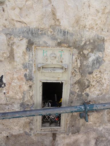 | Keywords: Israel Batch 1 (694).JPG Jerusalem Greek Orthodox Patriarchate Street Christian Quarter Old Jerusalem disused Mandate-era British wall-mounted cast-iron post box with waste inside GR is the royal cypher of King George V own 2011-07-29 12 37 37 User Mattes <gallery> File Israel Batch 1 694 JPG File Old Jerusalem Greek Orthodox Patriarchate British post box jpg </gallery> 31 778643 35 228689 GPS data may be inaccurate EXIF data regarding date and time may be inaccurate Commonist FoP-Israel DEFAULTSORT Jerusalem Abandoned mailboxes Christian Quarter Jerusalem Jerusalem in British Mandate King George V post boxes Post boxes in the British Mandate of Palestine Post boxes in Israel Wall mounted post boxes Waste in Israel Taken with Sony DSC-HX5VN Work by Mattes 2011 User Mattes/Contributions/Topics/Israel User Mattes/Contributions/Topics/Miscellaneous Greek Orthodox Patriarchate street |