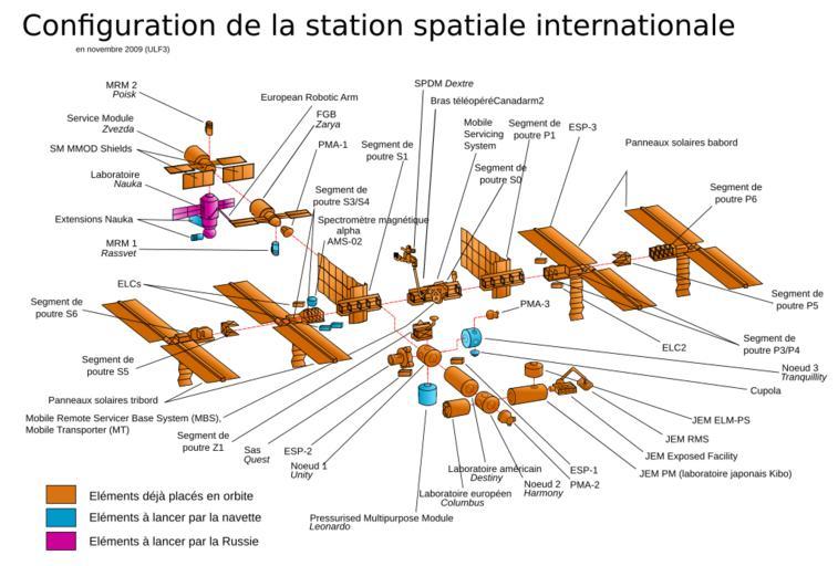 | Keywords: ISS configuration 2009-11 2 fr.svg The ULF3 configuration of the International Space Station following the addition of ExPRESS Logistics Carriers 1 2 launched by the Space Shuttle Atlantis on STS-129 french version Configuration de la station spatiale internationale après la mission STS-129 novembre 2009 ISS_configuration_2009-11_2_en svg 2010-01-20 14 48 UTC ISS_configuration_2009-11_2_en svg created by NASA derivative work Pline <span class signature-talk >talk</span> translation in french Pline ISS_configuration_2009-11_2_en svg Original upload log This image is a derivative work of the following images File ISS_configuration_2009-11_2_en svg licensed with PD-USGov-NASA PD-user 2009-12-09T21 47 30Z Colds7ream 1257x850 242699 Bytes <nowiki>ELC2</nowiki> 2009-12-08T16 41 14Z Colds7ream 1257x850 242698 Bytes <nowiki>PMA-3 to Node 3 Zenith</nowiki> 2009-11-18T15 03 13Z Colds7ream 1257x850 242369 Bytes <nowiki> validSVG en The ULF3 configuration of the International Space Station following the addition of ExPRESS Logistics Carriers 1 2 lau</nowiki> Obsolete diagrams of the International Space Station |