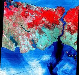 Keywords: Istanbul, Turkey DVIDS707138.jpg en This June 16 2000 image of Istanbul Turkey show a full 60 by 60 km ASTER scene in the visible and infrared channels Vegetation appears red and urban areas blue-green Bustling Istanbul with its magnificent historical heritage has spanned the divide between Europe and Asia for more than 2 500 years Originally called Byzantium the city was founded in the 7th century BC on the Golden Horn an arm of the narrow Bosporus also spelled Bosphorus Strait which connects the Sea of Marmara to the south with the Black Sea to the north Constantine I made it his capital of the Eastern Roman Empire in AD 330 As Constantinople the strategically located city arose as the preeminent cultural religious and political center of the Western world It reached the height of its wealth and glory in the early 5th century After centuries of decline the city entered another period of tremendous growth and prosperity when as Istanbul it became the capital of the Turkish Ottoman Empire in 1457 Although Turkey moved its capital to Ankara in 1923 Istanbul remains the nation's largest city with a population of over 8 million its commercial center and a major port Two bridges spanning the Bosporus and ships in the busy channel can be seen on the enlargement On the image the water areas have been replaced with a thermal image colder waters are displayed in dark blue warmer areas in light blue Note the dark lines showing boat wakes and the cold water entering the Sea of Marmara from deeper waters of the Bosporus Advanced Spaceborne Thermal Emission and Reflection Radiometer ASTER is one of five Earth-observing instruments launched December 18 1999 on NASA's Terra satellite The instrument was built by Japan's Ministry of International Trade and Industry A joint U S /Japan science team is responsible for validation and calibration of the instrument and the data products Dr Anne Kahle at NASA's Jet Propulsion Laboratory Pasadena Calif is the U S Science team leader; Moshe Pniel of JPL is the project manager ASTER is the only high resolution imaging sensor on Terra The primary goal of the ASTER mission is to obtain high-resolution image data in 14 channels over the entire land surface as well as black and white stereo images With revisit time of between 4 and 16 days ASTER will provide the capability for repeat coverage of changing areas on Earth's surface The broad spectral coverage and high spectral resolution of ASTER will provide scientists in numerous disciplines with critical information for surface mapping and monitoring dynamic conditions and temporal change Example applications are monitoring glacial advances and retreats monitoring potentially active volcanoes identifying crop stress determining cloud morphology and physical properties wetlands Evaluation thermal pollution monitoring coral reef degradation surface temperature mapping of soils and geology and measuring surface heat balance NASA Identifier PLAN-PIA02665 2009-10-14 Glenn Research Center https //www dvidshub net/image/707138 707138 2012-10-10 16 07 WASHINGTON DC US PD-USGov Bosphorus Images from DoD uploaded by Fæ