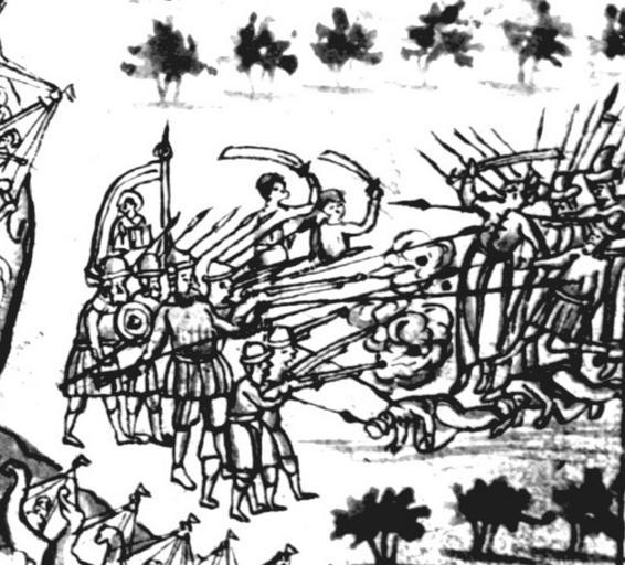 Keywords: IstSib050 1.jpg Бой казаков с тата ами на устье Тобола Исто ия Сиби ская ультимедиа Цент ГУ http //www mmedia nsu ru/vbook/vbook/obj8/MINIATURES htm 1697 - 1703 С У Ремезов Author died more than 70 years ago - public domain PD-old Remezov Chronicle |