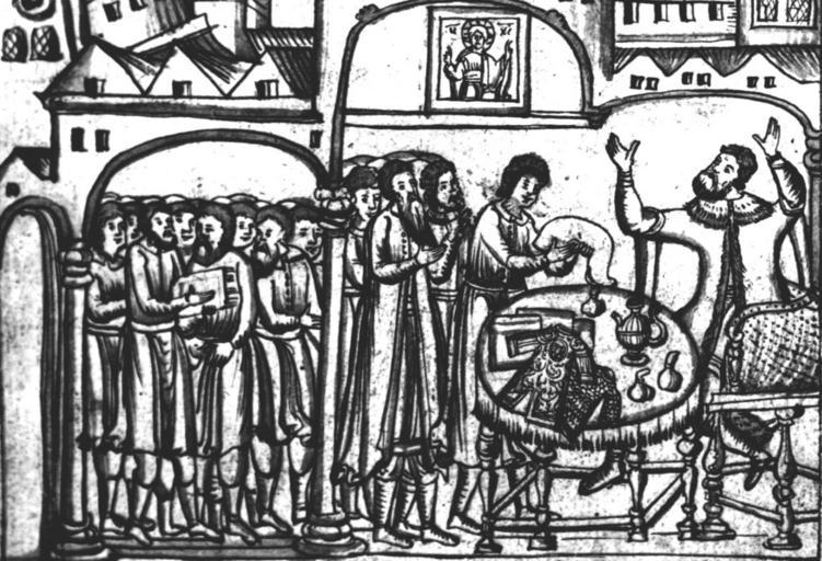 | Keywords: IstSib069 1.jpg Е мак получает ца скую г амоту и да ы Исто ия Сиби ская ультимедиа Цент ГУ http //www mmedia nsu ru/vbook/vbook/obj8/MINIATURES htm 1697 - 1703 С У Ремезов Author died more than 70 years ago - public domain PD-old Remezov Chronicle |