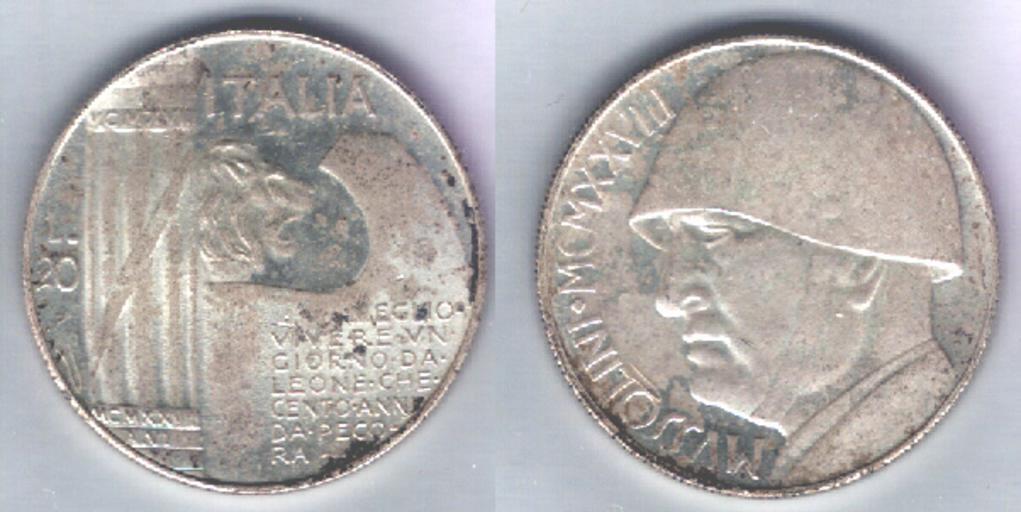 | Keywords: Italia 20 lire argento Mussolini.JPG Mussolini con l'elmo - 1927 Medaglia argentata Si tratta di un falso costruito nel dopoguerra Non esistono monete con l'immagine di Mussolini Le monete italiane avevano la testa di Vittorio Emanuele III Il rovescio รจ quello di una moneta emessa nel 1928 nel decennale della vittoria della I guerra mondiale a fake 20 lire silver Benito Mussolini with helmet - 1927 Italian coins during fascism only showed the head of the king Vittorio Emanuele III on obverse Silver plated medall 2005-01-28 own assumed Paginazero Informations scan by --Paginazero 12 52 28 Jan 2005 UTC Medals of Italy 1928 medals 1928 in Italy Counterfeit coins Benito Mussolini in art 1980s Fascist fasces on medals Fascist calendar - Year VI |