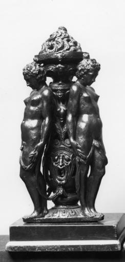 | Keywords: Italian - Cover for an Incense Burner - Walters 5447.jpg This cover and its pair Walters 54 48 each with three nude young women--possibly the Three Graces--leaning against an urn were for incense burners The perfumed smoke was released through holes piercing the antique-style grotesque masks Many small bronzes had a utilitarian purpose; incense burners were a typical product of bronze casters from Padua However while the figures' proportions modeling and black patina are characteristic of Italian workmanship the elegant conception has much in common with works for the French court Perhaps the sculptor was an Italian working in France between 1570 1590 Renaissance bronze cm 36 8 accession number 54 47 20486 Henry Walters Baltimore date and mode of acquisition unknown Walters Art Museum Henry Walters Acquired by Henry Walters place of origin Paris France Walters Art Museum license Renaissance applied arts in the Walters Art Museum Italian art in the Walters Art Museum Statues of the Three Graces Media contributed by the Walters Art Museum needs category review |