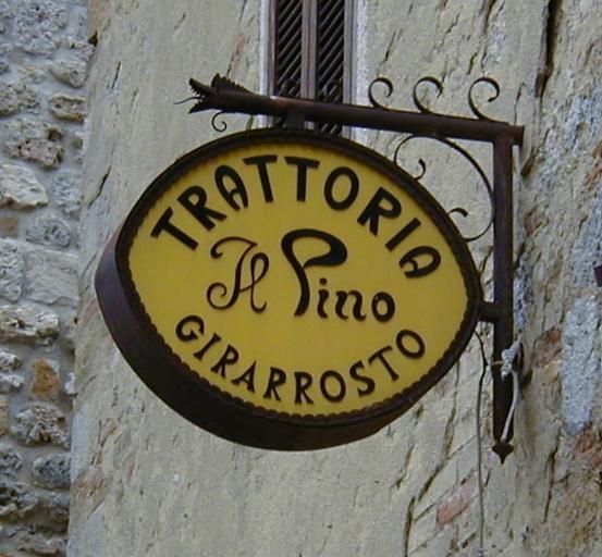 | Keywords: Italian trattoria sign.jpg Italian Trattoria sign This photo was taken somewhere in Tuscany the exact location of the depicted sign is no longer known to the author Own summer 2001 photo <br> 2006 01 08 edition Contributor 2001 in Italy Restaurants in Tuscany Restaurant signs in Italy Rusty signs |