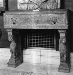 Keywords: Italian - Wall Fountain - Walters 27320 - Installation.jpg This wall fountain is inspired by classical models Water would originally have spouted from the mouths of the two lions The unidentified coat of arms belonged to the patron that paid for the fountain ca 1450 1500 Renaissance Red Verona marble cm 94 104 4 accession number 27 320 18579 Henry Walters Baltimore date and mode ofa cquisition unknown Walters Art Museum Henry Walters Acquired by Henry Walters place of origin Po Region in present-day Italy Walters Art Museum license Renaissance sculpture in the Walters Art Museum Italian art in the Walters Art Museum Media contributed by the Walters Art Museum needs category review |