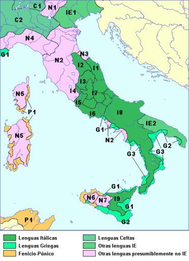 | Keywords: Italic-map.png  Italic-map svg Languages of Italy before Roman expansion N1 Rhaetic; N2 Etruscan; N3 Picenian of Novilara; N4 Ligurian; N5 Nuraghian; N6-N7 Elymian and Sican; C1 Lepontic; C2 Gallic; I1 South Picenian ; I2 Umbrian; I3 Sabinian I4 Faliscan; I5 Latin; I6 Volscan and Ernician; I7 Central Italic Marsian Aequian Paelignian Marrucian ; I8 Oscan; IE1 Venetic; IE2 Mesapian; G1-G2-G3 Greek dialects G1 Ionic G2-G3 Achaean-Doric ; P1 Punic Author Davius derivative works ligurian map png Italic-map svg Maps relating to Italic peoples Maps of Phoenicia Magna Graecia Maps of Etruria Linguistic maps of Italy  |