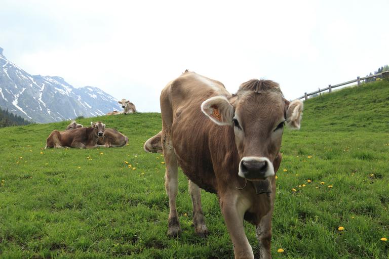 Keywords: italy cow mountain pastureland cowbell livestock landscape