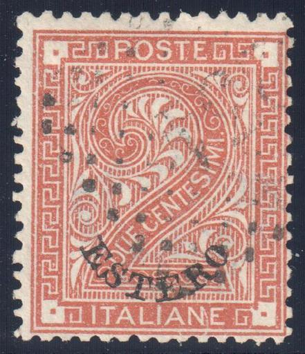 Keywords: Italy Estero 1874 Sc2u.jpg en Italy offices abroad Numeral of definitive issue overprinted 'ESTERO' in black 2 centesimi orange brown used by faint numeral '234' Alexandria postmark White wove paper with 'Imperial Crown' watermark Perforated 14 0 x 14 0 Typography printing by the Italian state printing offices in Turin Signed 'Lange' Catalogue Sass 2 Sc 2 1874 Scan of original Government of Italy PD-old-100 PD-Italy 1874 stamps of Italy Stamps of Italian post offices abroad Overprints on stamps of Italy Orange stamps Coded obliterations |