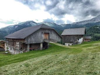 Keywords: italy landscape scenic sky clouds barn house farm rural grass hills mountains forest trees woods nature outside country countryside spring summer