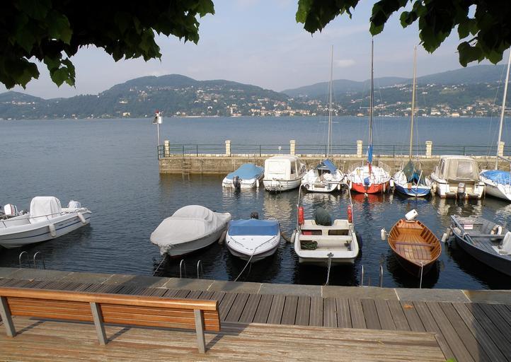 Keywords: italy mountains sky clouds harbor bay water boats pier dock trees bench scenic nature outside summer spring reflections