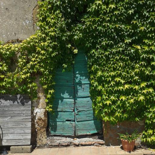 Keywords: italy serano grosseto countryside barn turquoise sheep sheep ranch stable door old door state of decay barn door expired expiration wood building doors double old ivy vegetation