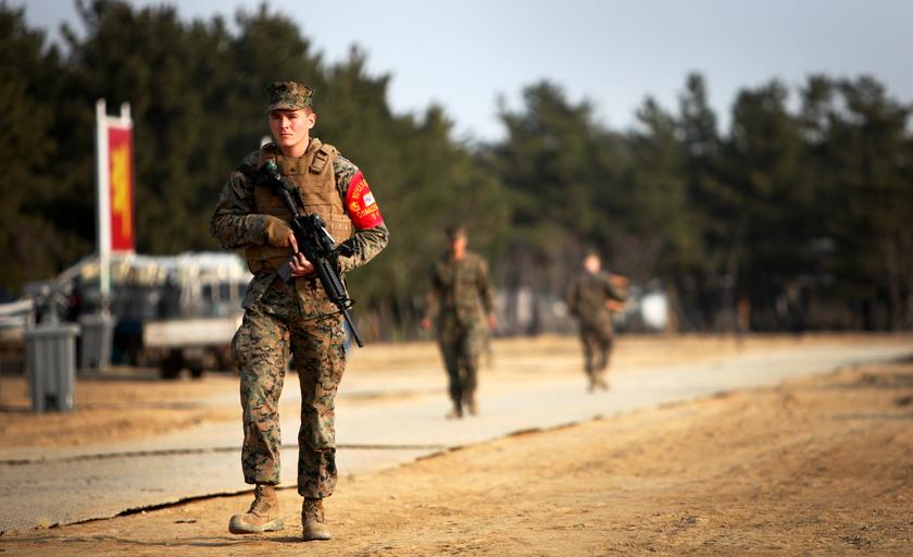 Keywords: I've Got Your 36 (13132120045).jpg Lance Cpl Johnson Zachery with III Marine Expeditionary Force Headquarters Group patrols surrounding area of Entry Control Point ECP for the U S and Republic of Korea ROK during Marine Expeditionary Force Exercise MEFEX 2014 March 11 at Pohang Korea ECP Marines have 36-hour shifts and their mission is to provide security for the command operating center U S Marine Corps Photo by Lance Cpl Andrew M Blanco/Released https //www flickr com/photos/marine_corps/13132120045/ I've Got Your 36 2014-03-11 08 21 https //www flickr com/people/40927340 N03 Marines from Arlington VA United States PD-USGov United States Marine Corps Official Page https //flickr com/photos/40927340 N03/13132120045 2016-09-03 21 54 21 United States Government Work Pohang |