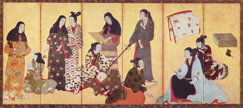 | Keywords: Iwasa Matabei 002.jpg Artwork de Matsuura Byobu Stellschirm ja 婦女遊楽図(右隻) de Goldpapier en Pair of six-fold screens; color and gold on paper cm 153 363 de Nara-Shi Nara-Ken de Yamato Bunkakan ja http //www kintetsu jp/kouhou/yamato/index html 大和文華館 en So called Matsuura Byobu for its former owner Matsuura ja 旧蔵 浦家にちなみ 浦屏風 と 称される Yorck ca 1650 Unknown the former attribution to Iwasa Matabei is not now regarded as credible 岩佐又兵衛 PD-old-100 Other versions <gallery> Image Iwasa Matabei 001 jpg Left hand screen 左隻 </gallery> PD-Art-YorckProject Paintings on screens from Japan Paintings of the Edo period National Treasures of Japan paintings byōbu |