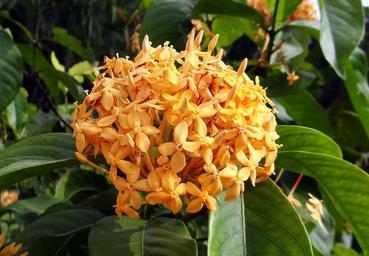 Keywords: ixora flower yellow creamish blossom flora plant garden nature tropical bloom floral blooming mysore india