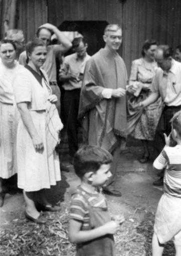 Keywords: argentina missionaries poncho gift blackandwhite monochrome black and white Caption: J.D. Graber, with Mennonite Board of Missionss, receives a poncho as a gift. It is somthing like a steamer rug with a slit cut through the middle which fits over the head. In this waty the shawl hangs down over one's arms and while riding hourseack can cover one's knees and it offers good protection against cold and rain. Citation: Mennonite Board of Missions. Photographs. Argentina, 1937-1954. IV-10-7.2 Box 1 folder 45, photo #4. Mennonite Church USA Archives - Goshen. Goshen, Indiana. Caption: J.D. Graber, with Mennonite Board of Missionss, receives a poncho as a gift. It is somthing like a steamer rug with a slit cut through the middle which fits over the head. In this waty the shawl hangs down over one's arms and while riding hourseack can cover one's knees and it offers good protection against cold and rain. Citation: Mennonite Board of Missions. Photographs. Argentina, 1937-1954. IV-10-7.2 Box 1 folder 45, photo #4. Mennonite Church USA Archives - Goshen. Goshen, Indiana. |