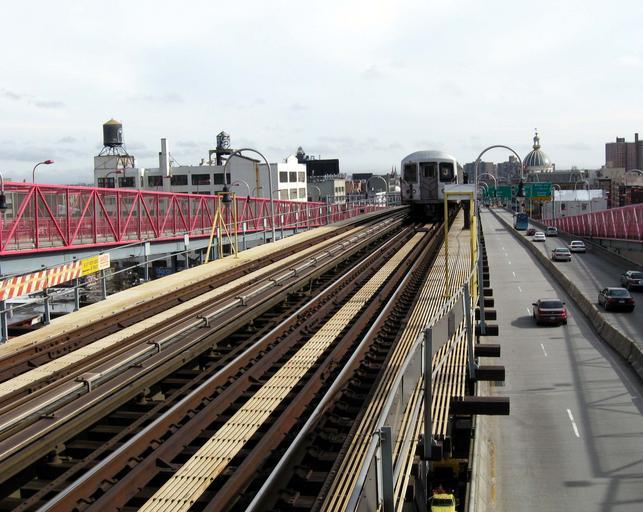 | Keywords: J train; on Williamsburg Bridge.jpg vias del tren del metro de NY Jamaica bound J train of J/Z New York City Subway service leaves Williamsburg Bridge on way to Marcy Avenue station Looking east from bridge pedestrian walkway on a sunny winter midday the English language Wikipedia http //en wikipedia org/w/index php title Special Log page File Jbilllyb JPG log February 24 2008 original upload date Jim Henderson original text <nowiki> </nowiki> Jim henderson Williamsburg Bridge rail tracks J New York City Subway service |