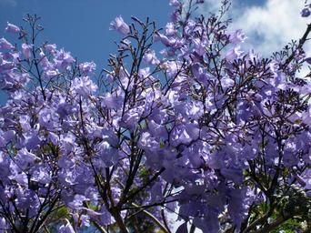 MAKE A MEME View Large Image jacaranda blossoms blue flowering tree-fern tree jacaranda name blazing blue species family bignoniaceae new zealand summer flowering fall height 15 meters flowering tree branches garden botany field nature landscape blue sky white clouds ...