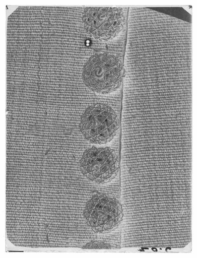 Keywords: Jacka av grå kamlott. Tillhört Karl X Gustav (1622-1660) - Livrustkammaren - 70981-negative.tif LSH artwork sv Denna dräkt består av jacka byxor och kanoner av grå kamlott d'Hollande Materialet är gråbrun yllekamlott med en vådbredd av 77 cm utan stad 20x8 5 tr/cm2 Varpen består av 1ljus och 1 mörk tråd som tvinnats åt höger tillsammans och inslaget består av 3 ljusa otvinnade trådar Staden utgörs av enbart 2 vita trådar Jackan som till sin form mycket påminner om jackan till dräkt nr 3419 är sydd av 4 storastycken som vidgats i sidorna och rundats i kanten Den har ca 37 cm öppna skört i sidornaoch bak Jackan har sytts ihop med korta sidosömmar och mitt bak endast till midjan Ärmarna består av 2 stycken och har öppna framsömmar Jackan är mitt fram 69 cm lång ståndkragen oräknad denna är 5 cm hög mitt fram och mitt bak 3 5 cm Mitt bak är jackan 73cm lång utan krage Den har sytts så att dess korta sidosömmar sömmen mitt bak ochaxelsömmarna sytts samman från baksidan Ärmarna har sytts ihop så att överstyckena ligger ovanpå de undre i den utsvängda baksömmenoch ärmarna har sedan trätts genom ärmhålet Endast den lilla korta framsömmen 15 cmlång nedanför det ca 35 cm långa sprundet har sytts ihop från baksidan I baksömmen påärmen är den nedre - raka - delen ca 15 cm lång öppen för att kunna bilda uppslag och harhär försetts med en skoning av brun rips Jackan verkar ej ha haft något mellanfoder men iärmuppslagen sitter papper mellan fodret och tyget Detta utgör styvnad för denursprungliga fastsydda garneringen av silverspets ty täta hål efter stygn visar att mansytt genom pappret det har varit en ca 9 cm bred spetsbesättning Jackan är fodrad medsilvermoiré med en vådbredd av 49 cm utan stad 64x14 tr/cm2 Varp och inslag är av vittotvinnat silke I varje inslag ligger på rätan en silverlan Stad 0 7 cm 6 gröna 6 gula 6 gröna 6 gula 6 gröna trådar samt 1 tjock vit - ripsbindning Mitt i tyget syns en randefter vattringen Jackans foder är skuret på samma sätt som tyget i övrigt dock har man omedelbart ovanförsidoskörtets öppning satt in 2 horisontella kilar för att göra plagget mindre åtstramande De är något varierande i storlek och placering men ca 1 cm långa Fram har jackan en helobruten rad av knapphål på vänster sida vilket ju icke är fallet med jackan nr 23 Det ärinalles 29 knapphål 3 5 cm långa och sydda med brunt högertvinnat silke över silkestråd 8stygn/cm På höger sida sitter utefter hela kanten 28 st d 2 cm knappar av vilka dockendast de 17 översta kunnat begagnas eftersom fodret täcker de följande På vänsterframstycke finns i sidokanten 15 knappar och på höger framstyckes sidokant 16 st svarandemot de 16 knapphål som sitter i sidostyckena och baksprundet Inte någon knapp i sprundenmitt bak eller i sidorna har kunnat knäppas ty fodret har hela vägen sytts över hålen Baktill finns på vänster stycke endast 13 knappar kvar På vänster ärms överstycke sitterav knappgarneringen endast 8 knappar kvar på höger ärm finns 14 knappar kvar Ärmarnasbakstycken har vardera 16 knapphål Ärmuppslagen har skoning av brun rips på kamlotten Kragen som är försedd med styvnad av fiskben instoppade i oblekt linnelärft 19x18tr/cm2 i vertikala avsyningar på drygt ½ cm s avstånd har ursprungligen varit fodrad medljus taft på insidan Detta tyg saknas nu nästan helt I jackan sitter axelsömmarna 2 sthängslen av linnelärft 20x17 tr/cm2 klädda med gulvitt siden De är något kortare framåtän bakåt och har 3 tränsade hål i varje ända så att möjlighet att reglera byxorna längdföreligger Jackan är på ärmarna och längs sprunden översållad av trådrester av grått silke även något enstaka prov på blått silke som tyder på en ursprungligen fastsydd garneringrunt kanterna I 1675 och 1691 års inventarier anmärks också att spetsarna sprättats bort isamband med 1675 års kröning original caption decade 1650 silver d2 - dräkt - foder material silver - woolen Färg grå d1 - dräkt - yttermaterial material ylle LRK Karl X Gustav av Sverige Museum Tre Kronor / Ståthållarämbetet - STÄ tidigare Kungl Husgerådskammaren 1999-2016 Modelejon 2002 place of origin original filename LN_E03714 58011 inventory number LRK 21476 70981 CC0 Jacka av grå kamlott Tillhört Karl X Gustav 1622-1660 - Livrustkammaren - 70981 tif <gallery caption Different images of same object > File Jacka av grå kamlott Tillhört Karl X Gustav 1622-1660 - Livrustkammaren - 25919 tif File Jacka av grå kamlott Tillhört Karl X Gustav 1622-1660 - Livrustkammaren - 62419 tif File Jacka av grå kamlott Tillhört Karl X Gustav 1622-1660 - Livrustkammaren - 79540 tif File Jacka av grå kamlott Tillhört Karl X Gustav 1622-1660 - Livrustkammaren - 1360 tif File Jacka av grå kamlott Tillhört Karl X Gustav 1622-1660 - Livrustkammaren - 9920 tif File Två dräkter som tillhört Karl X Gustav - Livrustkammaren - 65156 tif File Jacka av grå kamlott Tillhört Karl X Gustav 1622-1660 - Livrustkammaren - 18482 tif File Jacka av grå kamlott Tillhört Karl X Gustav 1622-1660 - Livrustkammaren - 17357 tif File Jacka av grå kamlott Tillhört Karl X Gustav 1622-1660 - Livrustkammaren - 27044 tif </gallery> |