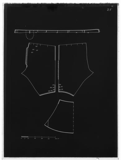 Keywords: Jacka av grå kamlott. Tillhört Karl X Gustav (1622-1660) - Livrustkammaren - 25919-negative.tif LSH artwork sv Denna dräkt består av jacka byxor och kanoner av grå kamlott d'Hollande Materialet är gråbrun yllekamlott med en vådbredd av 77 cm utan stad 20x8 5 tr/cm2 Varpen består av 1ljus och 1 mörk tråd som tvinnats åt höger tillsammans och inslaget består av 3 ljusa otvinnade trådar Staden utgörs av enbart 2 vita trådar <br/>Jackan som till sin form mycket påminner om jackan till dräkt nr 3419 är sydd av 4 storastycken som vidgats i sidorna och rundats i kanten Den har ca 37 cm öppna skört i sidornaoch bak Jackan har sytts ihop med korta sidosömmar och mitt bak endast till midjan Ärmarna består av 2 stycken och har öppna framsömmar Jackan är mitt fram 69 cm lång ståndkragen oräknad denna är 5 cm hög mitt fram och mitt bak 3 5 cm Mitt bak är jackan 73cm lång utan krage Den har sytts så att dess korta sidosömmar sömmen mitt bak ochaxelsömmarna sytts samman från baksidan <br/>Ärmarna har sytts ihop så att överstyckena ligger ovanpå de undre i den utsvängda baksömmenoch ärmarna har sedan trätts genom ärmhålet Endast den lilla korta framsömmen 15 cmlång nedanför det ca 35 cm långa sprundet har sytts ihop från baksidan I baksömmen påärmen är den nedre - raka - delen ca 15 cm lång öppen för att kunna bilda uppslag och harhär försetts med en skoning av brun rips Jackan verkar ej ha haft något mellanfoder men iärmuppslagen sitter papper mellan fodret och tyget Detta utgör styvnad för denursprungliga fastsydda garneringen av silverspets ty täta hål efter stygn visar att mansytt genom pappret det har varit en ca 9 cm bred spetsbesättning Jackan är fodrad medsilvermoiré med en vådbredd av 49 cm utan stad 64x14 tr/cm2 Varp och inslag är av vittotvinnat silke I varje inslag ligger på rätan en silverlan Stad 0 7 cm 6 gröna 6 gula 6 gröna 6 gula 6 gröna trådar samt 1 tjock vit - ripsbindning Mitt i tyget syns en randefter vattringen <br/>Jackans foder är skuret på samma sätt som tyget i övrigt dock har man omedelbart ovanförsidoskörtets öppning satt in 2 horisontella kilar för att göra plagget mindre åtstramande De är något varierande i storlek och placering men ca 1 cm långa Fram har jackan en helobruten rad av knapphål på vänster sida vilket ju icke är fallet med jackan nr 23 Det ärinalles 29 knapphål 3 5 cm långa och sydda med brunt högertvinnat silke över silkestråd 8stygn/cm På höger sida sitter utefter hela kanten 28 st d 2 cm knappar av vilka dockendast de 17 översta kunnat begagnas eftersom fodret täcker de följande På vänsterframstycke finns i sidokanten 15 knappar och på höger framstyckes sidokant 16 st svarandemot de 16 knapphål som sitter i sidostyckena och baksprundet Inte någon knapp i sprundenmitt bak eller i sidorna har kunnat knäppas ty fodret har hela vägen sytts över hålen Baktill finns på vänster stycke endast 13 knappar kvar På vänster ärms överstycke sitterav knappgarneringen endast 8 knappar kvar på höger ärm finns 14 knappar kvar Ärmarnasbakstycken har vardera 16 knapphål Ärmuppslagen har skoning av brun rips på kamlotten <br/>Kragen som är försedd med styvnad av fiskben instoppade i oblekt linnelärft 19x18tr/cm2 i vertikala avsyningar på drygt ½ cm s avstånd har ursprungligen varit fodrad medljus taft på insidan Detta tyg saknas nu nästan helt I jackan sitter axelsömmarna 2 sthängslen av linnelärft 20x17 tr/cm2 klädda med gulvitt siden De är något kortare framåtän bakåt och har 3 tränsade hål i varje ända så att möjlighet att reglera byxorna längdföreligger Jackan är på ärmarna och längs sprunden översållad av trådrester av grått silke även något enstaka prov på blått silke som tyder på en ursprungligen fastsydd garneringrunt kanterna I 1675 och 1691 års inventarier anmärks också att spetsarna sprättats bort isamband med 1675 års kröning original caption decade 1650 woolen Färg grå d1 - dräkt - yttermaterial material ylle - silver d2 - dräkt - foder material silver LRK Karl X Gustav av Sverige Museum Tre Kronor / Ståthållarämbetet - STÄ tidigare Kungl Husgerådskammaren 1999-2015 Modelejon 2002 place of origin original filename LN_A02363_002363 58011 inventory number LRK 21476 25919 CC0 Jacka av grå kamlott Tillhört Karl X Gustav 1622-1660 - Livrustkammaren - 25919 tif <gallery caption Different images of same object > File Jacka av grå kamlott Tillhört Karl X Gustav 1622-1660 - Livrustkammaren - 1360 tif File Jacka av grå kamlott Tillhört Karl X Gustav 1622-1660 - Livrustkammaren - 9920 tif File Två dräkter som tillhört Karl X Gustav - Livrustkammaren - 65156 tif File Jacka av grå kamlott Tillhört Karl X Gustav 1622-1660 - Livrustkammaren - 27044 tif File Jacka av grå kamlott Tillhört Karl X Gustav 1622-1660 - Livrustkammaren - 17357 tif File Jacka av grå kamlott Tillhört Karl X Gustav 1622-1660 - Livrustkammaren - 18482 tif </gallery> |