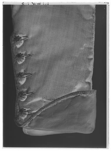| Keywords: Jacka hörande till Karl XIV Johans lilla serafimerordendräkt - Livrustkammaren - 61796-negative.tif LSH artwork sv Jacka av krabbröd sammet med långa ärmar kantad med smala guldgaloner Sömmarna täcks av ett guldsnöre Jackan är sydd med en mittsöm bak samt två snedställda sidsömmar täckta med guldsnöre Rakt skurna framstycken Knäppning mitt fram bestående av en knapprad på vänster framstycke med 14 runda höga knappar klädda med guldtråd i ett snörmakeriarbete På höger framstycke motsvarande knapphål 23 mm breda kantade med stygn av guldtråd Knäppningen är inramad med guldgalon Mitt på vardera framstycke en iskuren horisontell ficka 205 mm lång med en markerad slå 50 mm bred På vardera framstycke intill ärmen sitter en knapp Axelkarmar 70 mm breda vadderade och uppdelade i 13 tungor kantade med guldgalon Långa smala ärmar med sömmarna täckta av guldsnöre en yttersöm och en innersöm Vid ärmsluten ett 150 mm högt sprund som fortsättning på innersömmen Sprundet har en knäppning bestående av en knapprad med fem knappar samt motsvarande knapphål Ärmarna är i nederkanten uppvikta i 70 mm breda slag vilka är fodrade med gult blankt sidentyg med inslag av guldtråd och nederkanten kantad med guldgalon En 85 mm hög ståndkrage kantad med guldband upptill och i nederkanten över sömmen med guldsnöre På bakstycket under kragen sitter två knappar en knapp på vardera sida Vid dessa är fästat ett 130 mm långt axelsnöre av tvinnad guldtråd vilket löper ner mot axeln snett bak på ryggen På snöret mitt bak sitter två hyskor av två stora stygn av gul silkestråd Sömmarna bildar på baksycket från midjan fyra invikta skörtflikar På vardera sida i nedre kanten en kil Jackan är på insidan fodrad med vit sidenatlas original caption early other date century 19 velvet Färg röd material sammet - silk Färg vit material atlas - gold thread Färg guld material guldtråd size mm 600 fram size mm 650 bak size mm 1055 bröst LRK Karl XIV Johan av Sverige-Norge Jean Baptiste Bernadotte Fest och fritid vid hovet 2003 place of origin original filename LN_B15847_018727 56243 inventory number LRK 19663 61796 CC0 Jacka hörande till Karl XIV Johans lilla serafimerordendräkt - Livrustkammaren - 61796 tif <gallery caption Different images of same object > File Jacka hörande till Karl XIV Johans lilla serafimerordendräkt - Livrustkammaren - 78926 tif File Jacka hörande till Karl XIV Johans lilla serafimerordendräkt - Livrustkammaren - 53244 tif File Jacka hörande till Karl XIV Johans lilla serafimerordendräkt - Livrustkammaren - 1881 tif File Jacka hörande till Karl XIV Johans lilla serafimerordendräkt - Livrustkammaren - 70367 tif File Jacka hörande till Karl XIV Johans lilla serafimerordendräkt - Livrustkammaren - 61805 tif </gallery> |